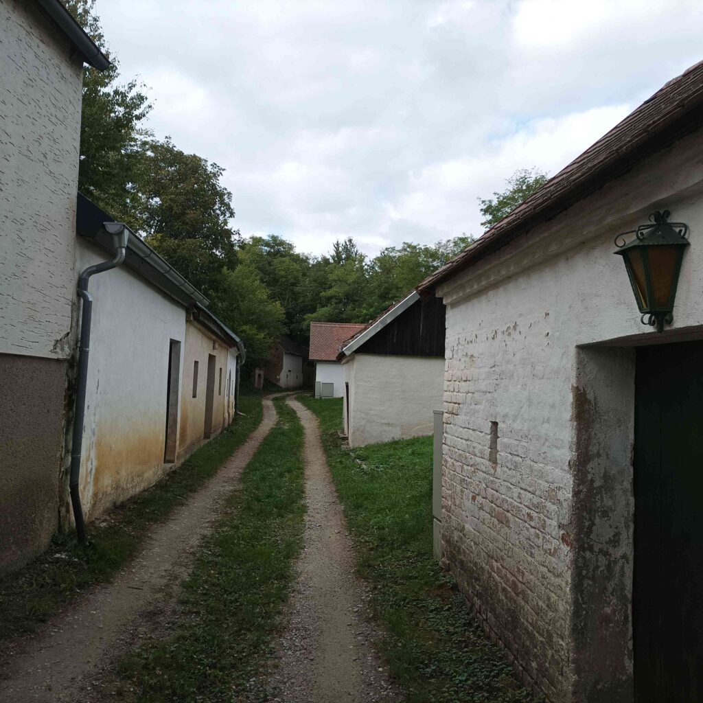 Eine schöne alte Kellergasse durchqueren wir auf dem Taubenkogel Rundwanderweg bei Kleinstetteldorf (Hollabrunn).